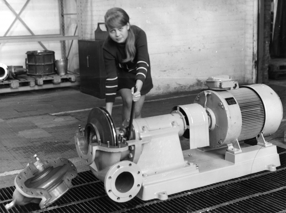 Massapumppu M-L 15 S avattu tarkistusta varten. Pirjo Laurén 20.5.1969.