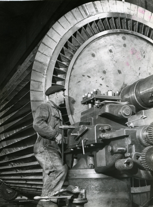 Imusylinterin sorvausta. Sorvaaja Heikki Loikkanen 5.2.1960.