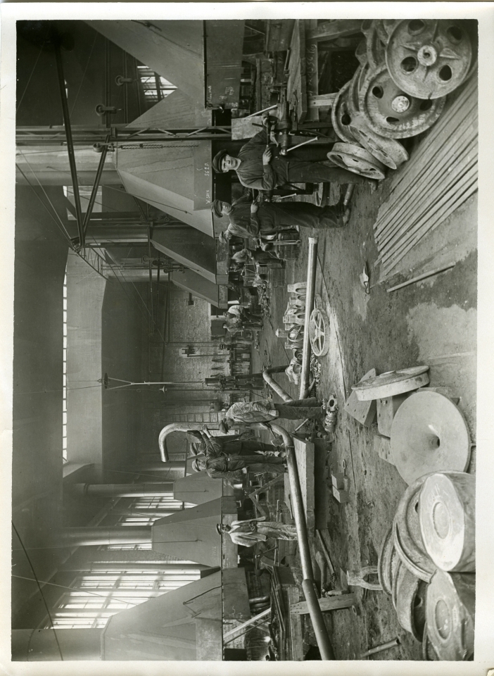Levyseppien työmaa oli pajan pohjoisosassa. Takana seppien ahjot.