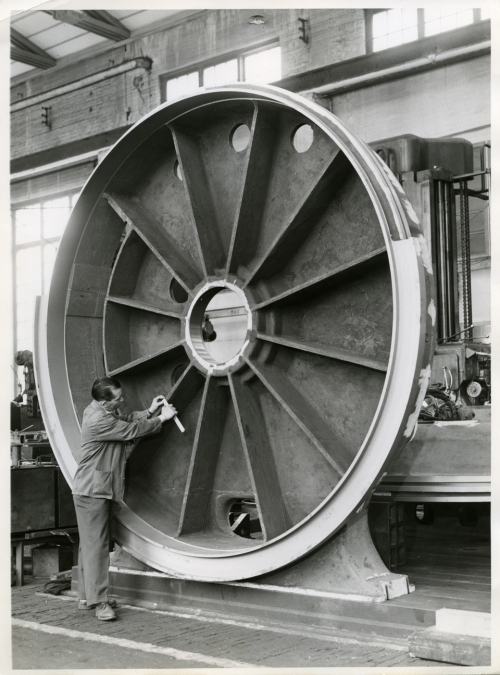 Ylösottokoneen pääty aarporaus vaiheessa. Kuvassa on teknikko Kalevi Korvonen.